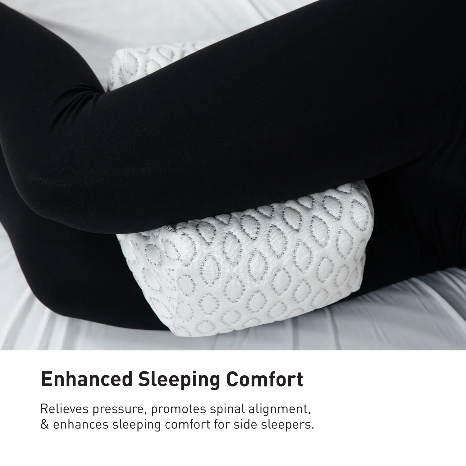 Experience full-body bliss with the versatile Knee Pillow, featuring an hourglass design that adapts to your needs—align your neck, relieve lumbar discomfort, or elevate your legs for enhanced relaxation and increased blood flow.